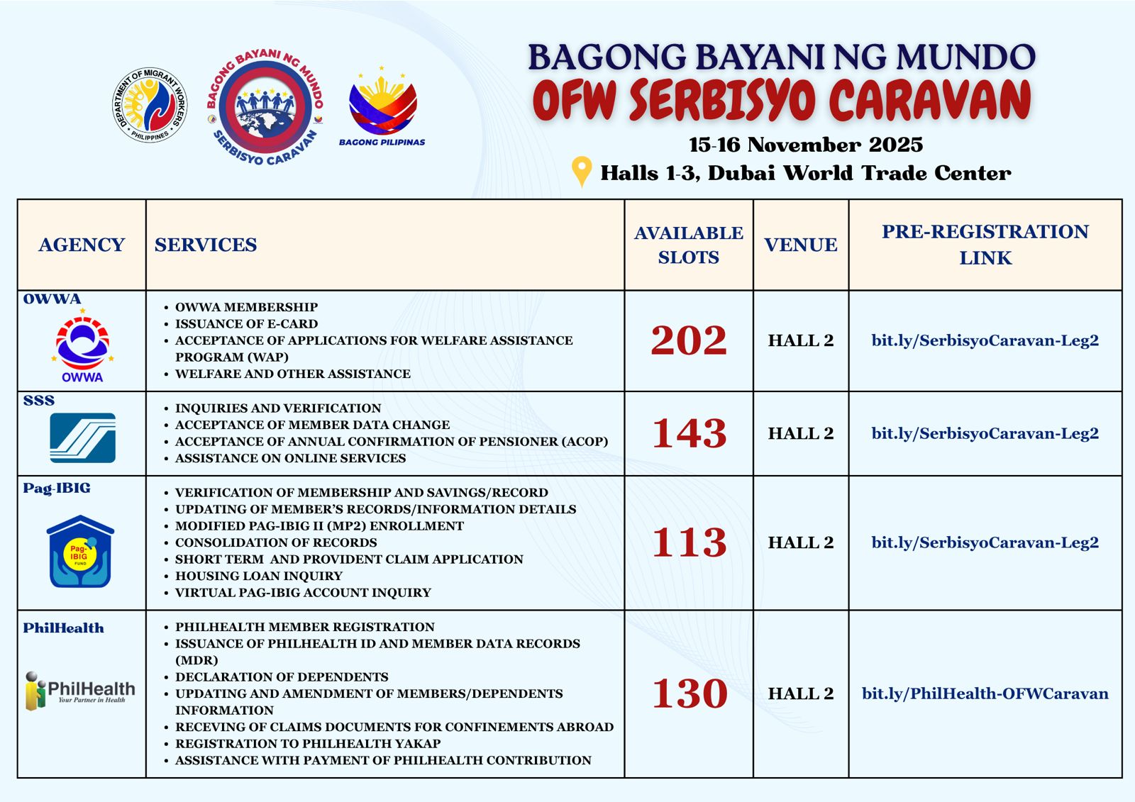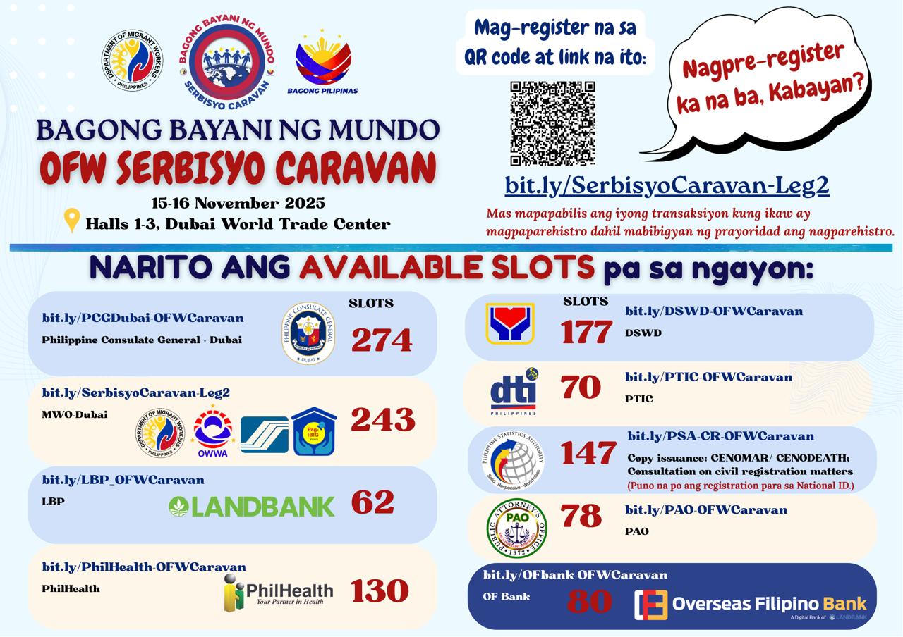 ๐๐๐๐ข๐ง๐ -๐๐๐ฅ๐๐ฐ๐๐ง๐ (๐๐) ๐๐ก๐๐ง๐ฌ๐ฒ๐ ๐ง๐ ๐ ๐จ๐๐ฒ๐๐ซ๐ง๐จ ang magbibigay ng ibaโt ibang serbisyo para sa mga Overseas Filipino Workers sa Dubai at Northern Emirates. Kaya halika ka na at ๐ฆ๐๐ ๐ฉ๐-๐ซ๐๐ก๐ข๐ฌ๐ญ๐ซ๐จ ๐ฌ๐ ๐ฅ๐ข๐ง๐ค ๐จ๐ซ ๐๐ ๐๐จ๐๐ sa ibaba upang maging maayos at madali ang proseso pagpunta mo sa OFW Serbisyo Caravan:โฃโฃ