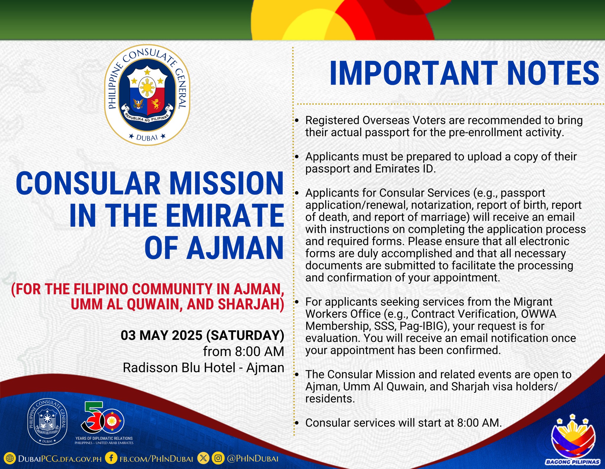 For the Filipino community in Ajman, Umm Al Quwain, and Sharjah
