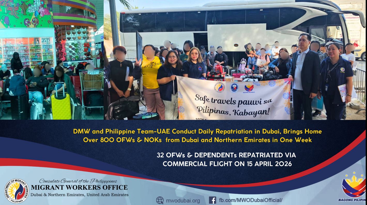 346 OFWs and dependents were repatriated via chartered flight in the morning of 13 April 2026.