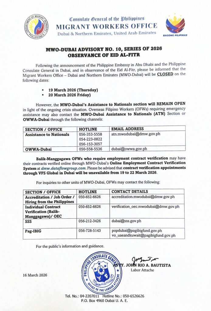 ๐˜๐˜ฐ๐˜ญ๐˜ญ๐˜ฐ๐˜ธ๐˜ช๐˜ฏ๐˜จ ๐˜ต๐˜ฉ๐˜ฆ ๐˜ข๐˜ฏ๐˜ฏ๐˜ฐ๐˜ถ๐˜ฏ๐˜ค๐˜ฆ๐˜ฎ๐˜ฆ๐˜ฏ๐˜ต ๐˜ฐ๐˜ง ๐˜ต๐˜ฉ๐˜ฆ ๐˜—๐˜ฉ๐˜ช๐˜ญ๐˜ช๐˜ฑ๐˜ฑ๐˜ช๐˜ฏ๐˜ฆ ๐˜Œ๐˜ฎ๐˜ฃ๐˜ข๐˜ด๐˜ด๐˜บ ๐˜ช๐˜ฏ ๐˜ˆ๐˜ฃ๐˜ถ ๐˜‹๐˜ฉ๐˜ข๐˜ฃ๐˜ช ๐˜ข๐˜ฏ๐˜ฅ ๐˜ต๐˜ฉ๐˜ฆ ๐˜—๐˜ฉ๐˜ช๐˜ญ๐˜ช๐˜ฑ๐˜ฑ๐˜ช๐˜ฏ๐˜ฆ ๐˜Š๐˜ฐ๐˜ฏ๐˜ด๐˜ถ๐˜ญ๐˜ข๐˜ต๐˜ฆ ๐˜Ž๐˜ฆ๐˜ฏ๐˜ฆ๐˜ณ๐˜ข๐˜ญ ๐˜ช๐˜ฏ ๐˜‹๐˜ถ๐˜ฃ๐˜ข๐˜ช, ๐˜ข๐˜ฏ๐˜ฅ ๐˜ช๐˜ฏ ๐˜ฐ๐˜ฃ๐˜ด๐˜ฆ๐˜ณ๐˜ท๐˜ข๐˜ฏ๐˜ค๐˜ฆ ๐˜ฐ๐˜ง ๐˜ต๐˜ฉ๐˜ฆ ๐˜Œ๐˜ช๐˜ฅ ๐˜ˆ๐˜ญ-๐˜๐˜ช๐˜ณ๐˜ต, ๐˜ฑ๐˜ญ๐˜ฆ๐˜ข๐˜ด๐˜ฆ ๐˜ฃ๐˜ฆ ๐˜ช๐˜ฏ๐˜ง๐˜ฐ๐˜ณ๐˜ฎ๐˜ฆ๐˜ฅ ๐˜ต๐˜ฉ๐˜ข๐˜ต ๐˜ต๐˜ฉ๐˜ฆ ๐˜”๐˜ช๐˜ณ๐˜จ๐˜ณ๐˜ข๐˜ฏ๐˜ต ๐˜ž๐˜ฐ๐˜ณ๐˜ฌ๐˜ฆ๐˜ณ๐˜ด ๐˜–๐˜ง๐˜ง๐˜ช๐˜ค๐˜ฆ – ๐˜‹๐˜ถ๐˜ฃ๐˜ข๐˜ช ๐˜ข๐˜ฏ๐˜ฅ ๐˜•๐˜ฐ๐˜ณ๐˜ต๐˜ฉ๐˜ฆ๐˜ณ๐˜ฏ ๐˜Œ๐˜ฎ๐˜ช๐˜ณ๐˜ข๐˜ต๐˜ฆ๐˜ด (๐˜”๐˜ž๐˜–-๐˜‹๐˜ถ๐˜ฃ๐˜ข๐˜ช) ๐˜ธ๐˜ช๐˜ญ๐˜ญ ๐˜ฃ๐˜ฆ ๐˜Š๐˜“๐˜–๐˜š๐˜Œ๐˜‹ ๐˜ฐ๐˜ฏ ๐˜ต๐˜ฉ๐˜ฆ ๐˜ง๐˜ฐ๐˜ญ๐˜ญ๐˜ฐ๐˜ธ๐˜ช๐˜ฏ๐˜จ ๐˜ฅ๐˜ข๐˜ต๐˜ฆ๐˜ด: