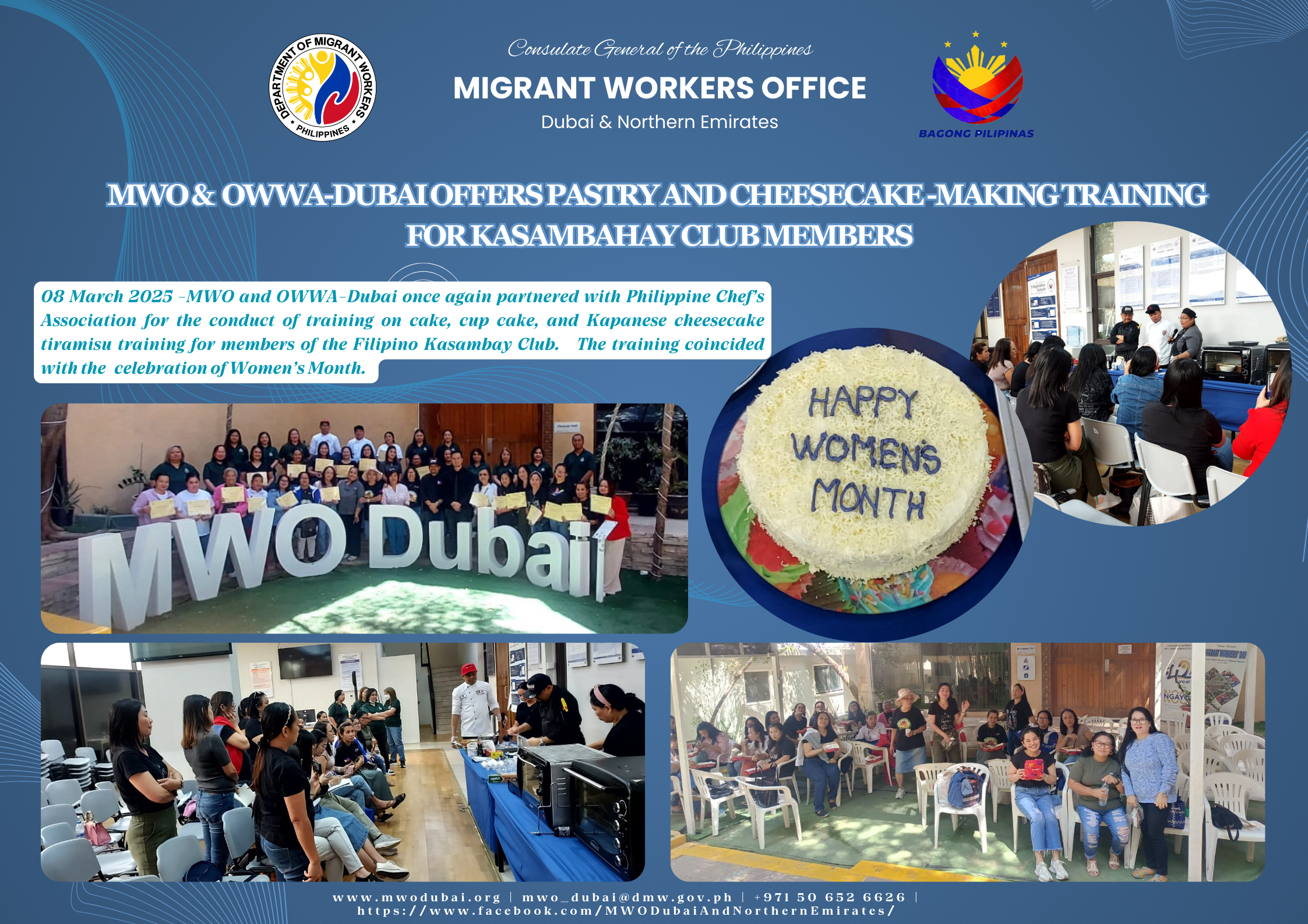 MWO AND OWWA – DUBAI OFFERS PASTRY AND CHEESECAKE – MAKING TRAINING FOR KASAMBAHAY CLUB MEMBERS
