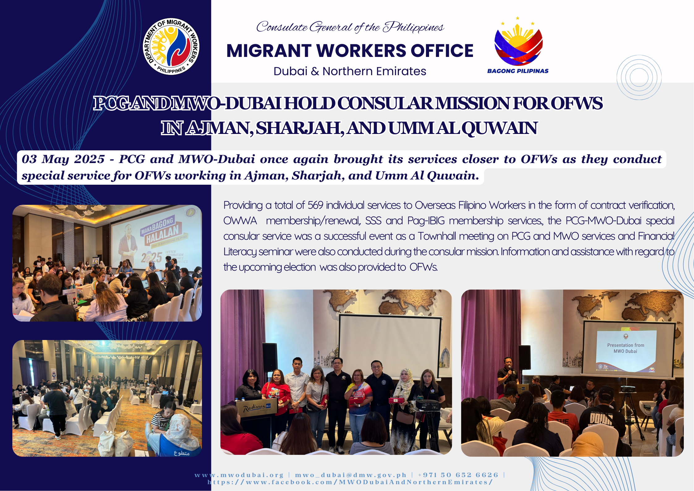 03 May 2025 – PCG and MWO-Dubai once again brought its services closer to OFWs as they conduct special services for OFW working in Ajman, Sharjah, and Umm Al Quwain.